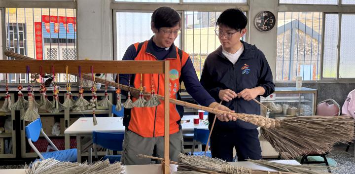 前林園愛鄉協會理事長陳俊強導覽林園海洋濕地公園紅樹林胎生苗與特有倒立水母,陳俊強說,濕地是林園後花園,孕育紅樹林同時,滋養人類禮敬土地情感。林內社區發展協會總幹事陳文三介紹天地掃歷史與習俗,並指導青年體驗曝曬槺榔葉、聚束綁紮、月桃莖纏繩等步驟。天地掃綁單不綁雙、買雙不買單,象徵掃除晦氣、敬天惜地,體現常民生活智慧。