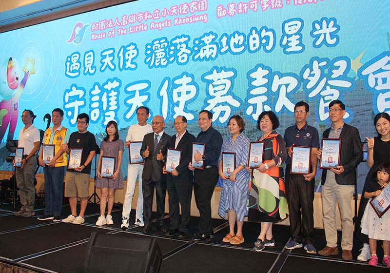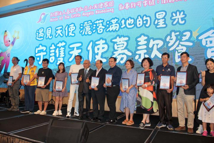 財團法人高市私立小天使家園9月21日舉行114年守護天使募款餐會,主題定為「遇見天使灑落滿地的星光」,象徵捐資者照亮兒少生命,所得作為零至6歲嬰幼兒照護及未滿12歲兒少收出養服務基金,現場席開120桌,小天使家園董事長陳紹崇(圖一左)頒狀感謝高市新聞聯盟總會理事長張永漢(圖一右)等個人、企業及團體贊助支持,高市社會局副局長葉玉如、立委賴瑞隆、林岱樺等人見證及獻上祝福。