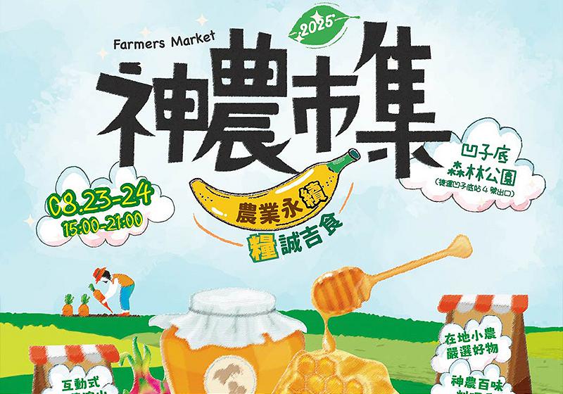 高市農業局神農市集8月23日、24日下午3點至晚上9點在凹子底森林公園舉行,邀集中南部小農參展百攤產地直送優質農產與加工品,同步規劃「高雄好牛!乳此精彩!」國產鮮乳推廣活動、「大草蝦水耕沙拉佐高雄特級蜂蜜芥末醬」料理秀、互動魔術、街頭藝人展演等活動,歡迎抽空到場同樂。