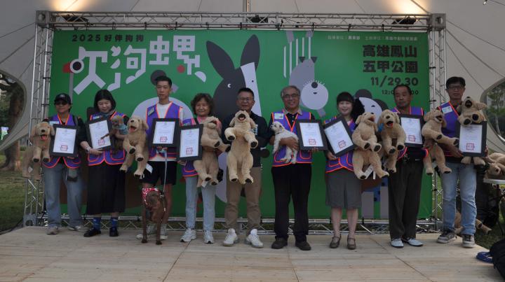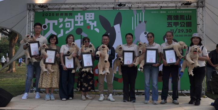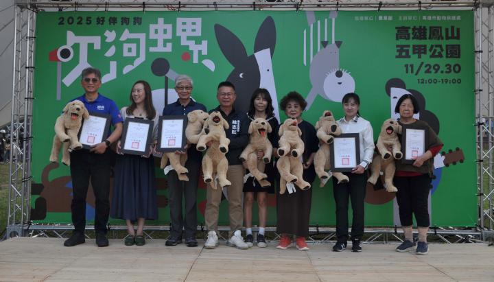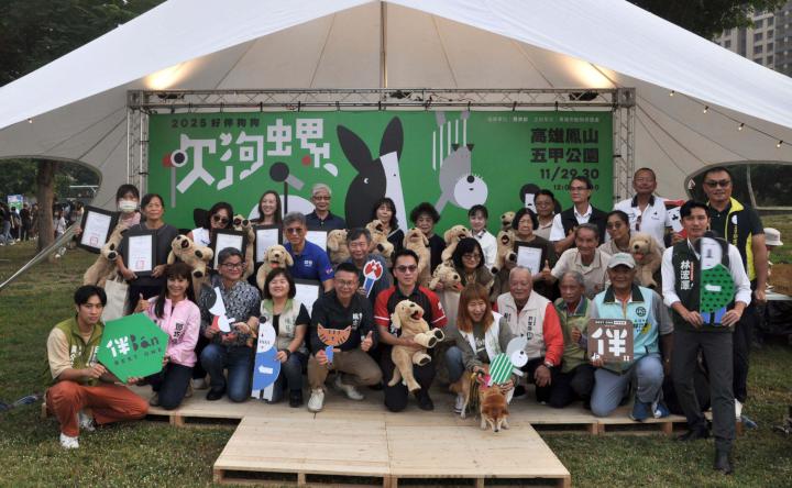 高市農業局動物保護處2025 好伴狗狗吹狗螺系列活動11月29日及30日中午12點至晚上7點在鳳山五甲公園舉行,規劃 「好伴狗狗 OutDog GoGo」 互動競賽、「樂陪伴 LovePetBan」黑狗療癒與市集、「好伴 Good Partner」飼主教育講座與課程等主題活動,農業部動物保護司簡任技正鄭清福、高市農業局長姚志旺、動保處長葉坤松、鳳山區長吳茂樹等人到場,姚志旺頒狀感謝動保志工,並參與秋田犬遊行,姚志旺說,透過市集、舞台展演、教育講座、動物體驗闖關,展現營造寵物友善環境、推廣生命教育、制定終生照護政策等成果。