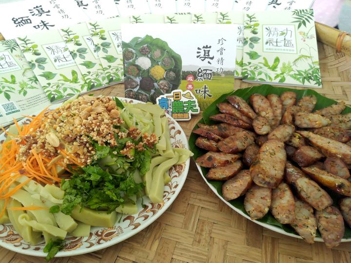 高市美濃精功社區10月6日參照滇緬節慶辦理一日農夫遊程,帶領遊客抓取白、紅、黑、黃四色糯米,搭配錦薩打拋肉、雲南大薄片、包料魚、雲南傣味香草香腸、碗豆涼粉、傳統酸菜等20道香草特色料理,體驗手抓飯滋味,同時體會先人生活智慧。