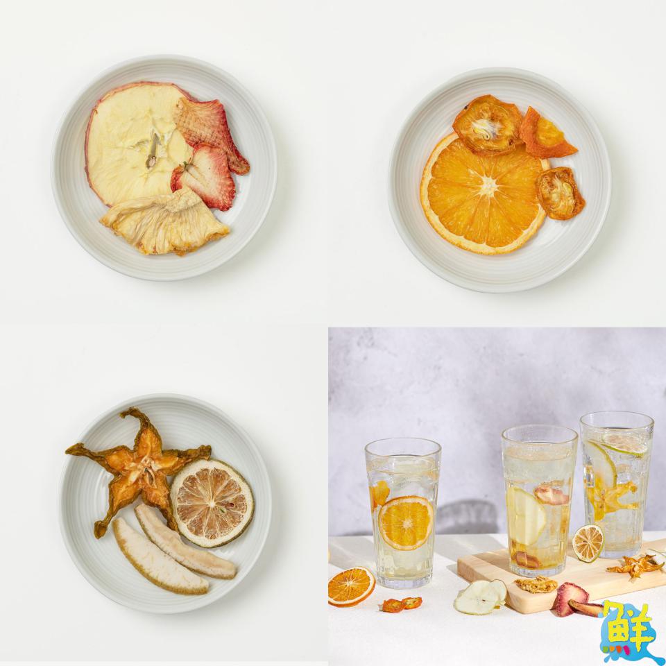 ▲果乾水元素系列: (左上)草莓&蘋果&鳳梨、(右上)甜橙&金桔、(左下)檸檬&柚子&楊桃