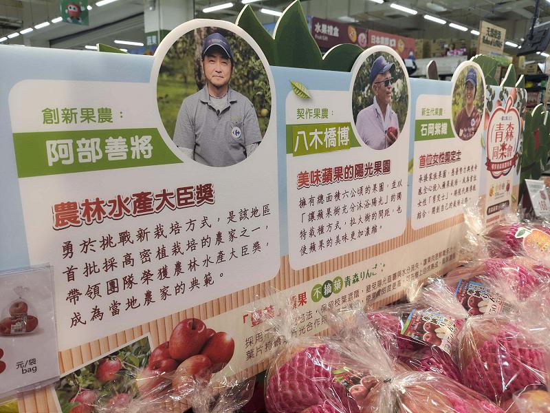日本青森蘋果小農見面會最終場1月18日巡迴家樂福高雄鼎山店,邀請八木橋博、石岡紫織、阿部善將等三名契作果農分享豐葉蘋果種植心得,並開放有獎提問、試吃品嘗及提供料理食譜,家樂福公共事務部部長陳依芳說,適逢蘋果落地青森151週年,商請3名農友來台與消費者會面,分享種出好吃蘋果秘訣,廣田神社聯名豐葉蜜蘋果6入禮盒699元、祈福豐葉蘋果3入228元。
