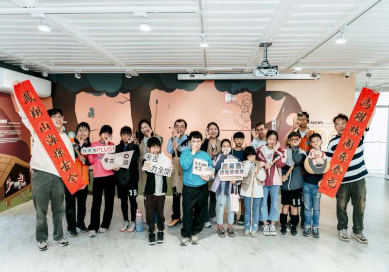 高市文化局鳳鼻頭考古教育館2月3日啟用,同步辦理「鳳鼻頭時光冒險隊出動-玩考古PLUS!」活動,文化部文資局主秘張祐創、高市文化局副局長簡美玲、林園區國小學生組成時光冒險隊,挑戰考古教具箱與史前工具見證誌慶,考古教育館二期新增半戶外操作場域與多功能教室,還開發專屬推廣教具,並規劃隱藏的古物、史前人的食衣住行及我們與考古的距離等三大主題展區,強調互動教育。圖/文化局提供、文/高培德
