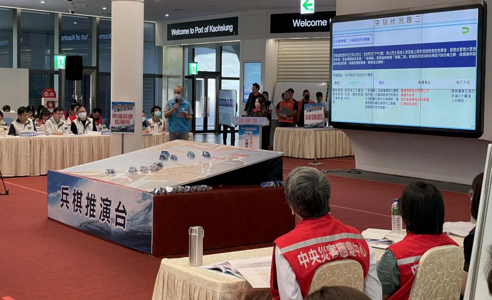 交通部與高市府114年高雄港大型客船災害防救演習兵棋推演8月22日在高雄港旅運中心舉行,模擬海難救援及船舶油污應變,內容涵蓋消防滅火、船舶乘客救援、大量傷患醫療後送、海上油污染處置等,驗證中央攜手地方災害應變協處能力。