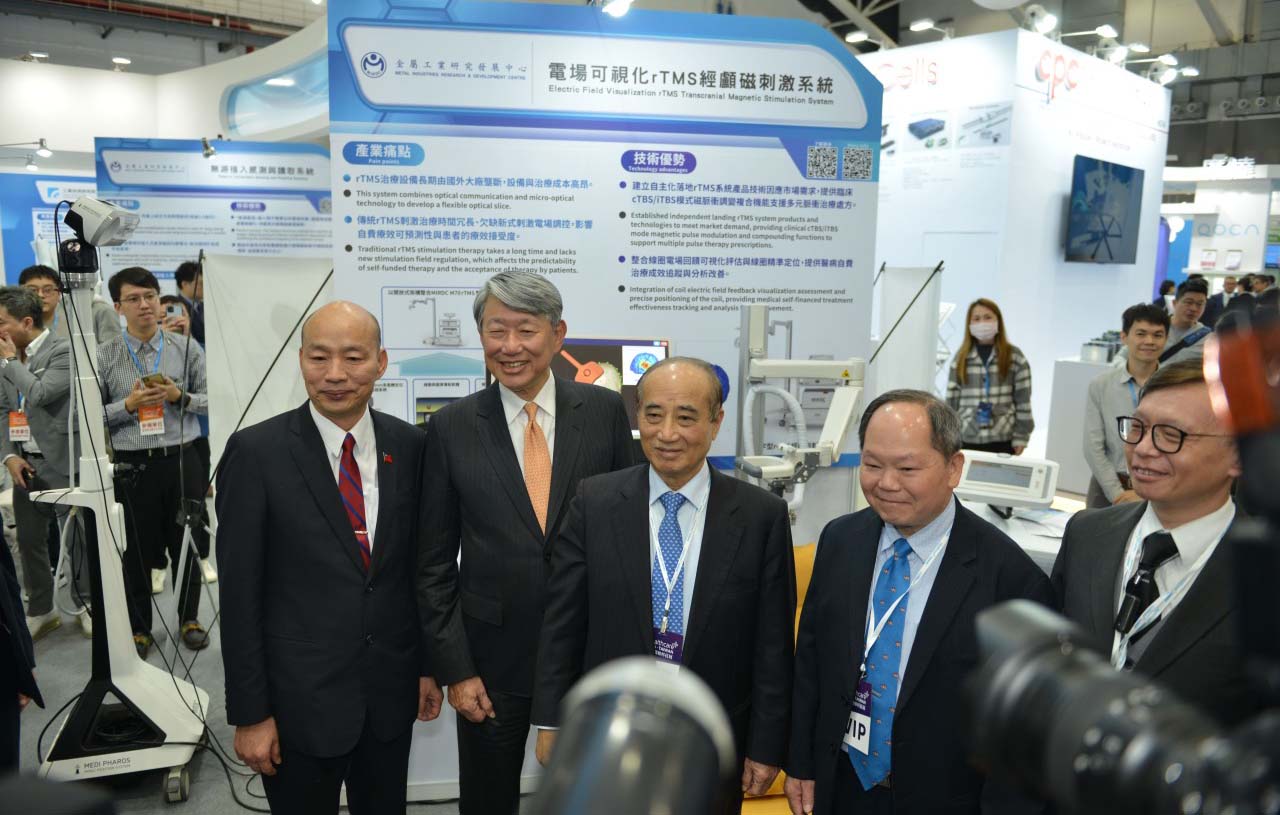 2024台灣醫療科技展12月5日至8日在台北南港展覽館一館舉行,經濟部產業技術司簡任技正戴建丞、財團法人金屬工業研究發展中心執行長賴永祥等人參與開幕式,金屬中心參展「自主化rTMS重複經顱磁刺激治療系統」,提出重度憂鬱症病友併發躁鬱症解決方案,同步刺激大腦多區域,縮短療程70%,提升醫療品質。金屬中心12月5日與國家衛生研究院、美國NoetherTech簽署合作備忘錄(MOU),整合動物實驗技轉研究與治療處方,拓展國際醫療市場商機,創造雙贏。