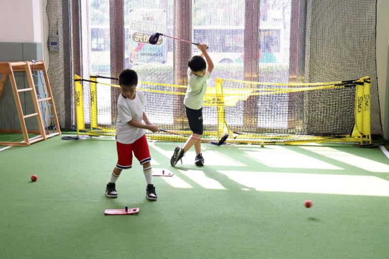 學院開設暑期夏令營,規劃多元運動強化孩子肌耐力、手眼協調能力,並透過互動遊戲逐步認識並愛上高球,學院也設有10堂體驗課程,最後兩堂下場競技,周文軒自豪地說「可以培養高球小將登上國際舞台,成為台灣之光的起點」