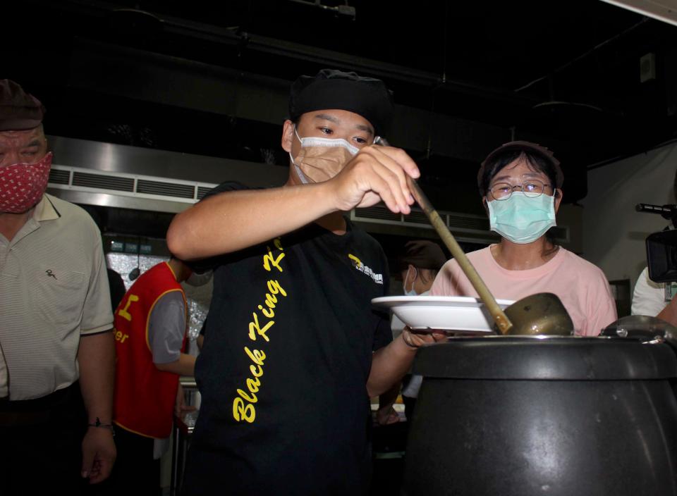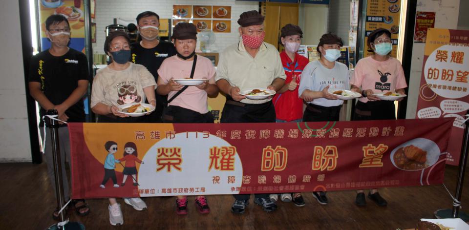 高市米迦勒社會福利協會辦理為期三天「榮耀的盼望」視障者職場體驗營,安排障友前進手搖飲、烘焙、餐飲等店家實習體驗,其中正修科技大學學生餐廳咖哩店5名障友在志工引導協助下,學習點餐、備餐、出餐流程、包裝行銷、環境清潔等,63歲多重障礙病友阿珍從事按摩工作,高中車禍意外造成雙手萎縮,婚後視神經不明原因病變,她說,公餘愛下廚,利用營隊學習第二專長,未來如年紀增長無法勝任按摩工作,還能轉換跑道。米迦勒社福協會執行長時令瑤說,期盼藉由職場體驗,引導障友熟悉餐廳前後場工作,感受廚房高溫悶熱環境,累積未來轉銜職場實務經驗,感謝黑金剛咖哩提供機會。圖與文/高培德