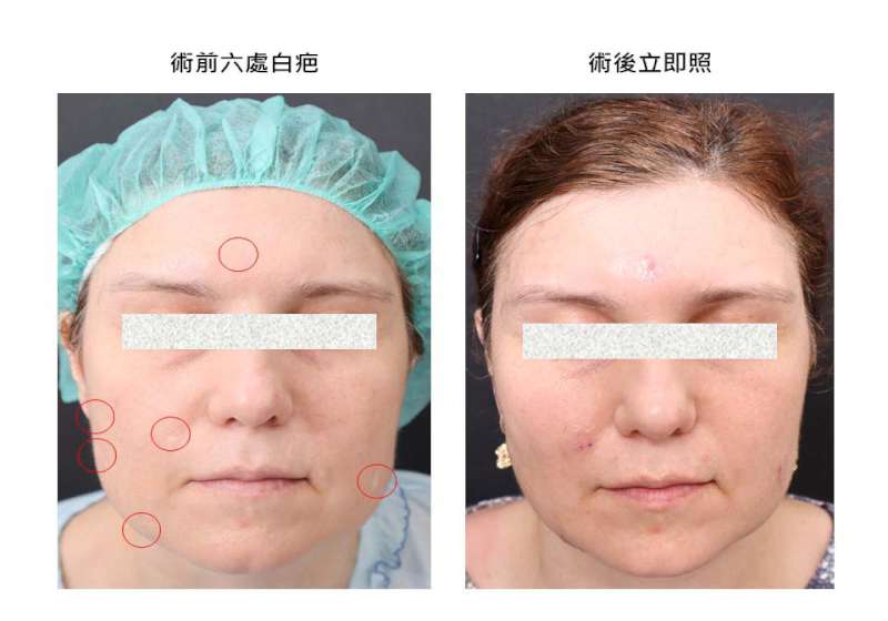 俄羅斯女子點痣眉心右臉留6處白疤 國際白疤中心創辦人曹賜斌白疤顏色再生術撫平