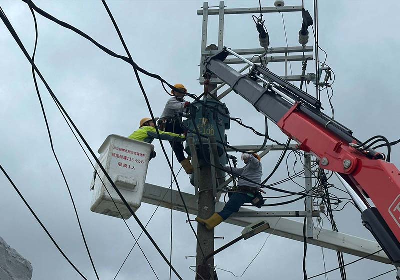 強颱康芮10月31日襲台,台電鳳山區處逾5000戶停電,緊急動員180人、工程車20輛、吊臂車8輛、卡車8輛、昇空車10輛、發電機10台、抽水機9台搶修,截至下午4點約5000戶復電,立委林岱樺慰訪區處人員辛勞,也提醒大家留意自身安全。