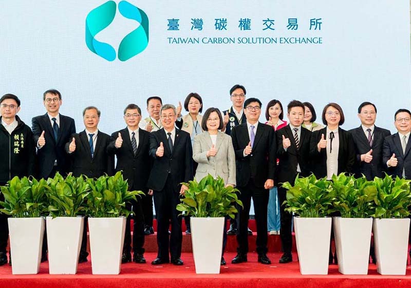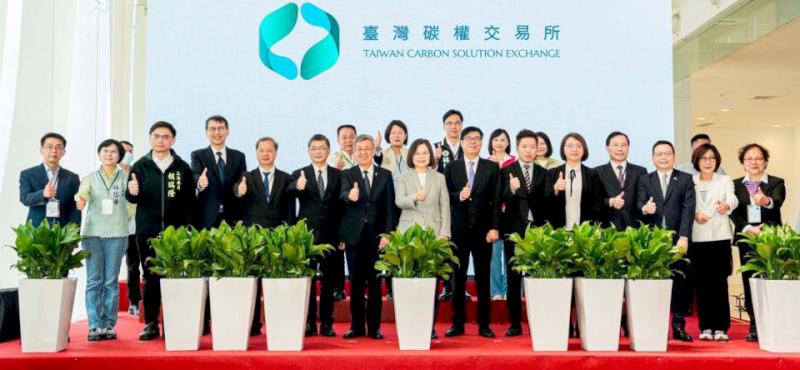 台灣碳權交易所8月7日進駐高雄軟體園區揭牌,總統蔡英文、行政院長陳建仁、高雄市長陳其邁、台灣證券交易所、台灣碳權交易所董事長林修銘、中鋼總經理王錫欽、德國軟體商SAP 全球副總裁、台灣總經理陳志惟等人見證誌慶,蔡英文說,2050淨零轉型是全球共識,也是重點施政目標,中央推出4大轉型及12項關鍵戰略,採先大後小、以大帶小模式,降低企業轉型衝擊,兼顧經濟成長與環境永續平衡。碳交所可望協助企業朝新興綠能創新產業發展,預計2023年至2030年帶動民間投資逾4兆元,創造產值5兆9000億元,新增超過55萬個在地就業機會。