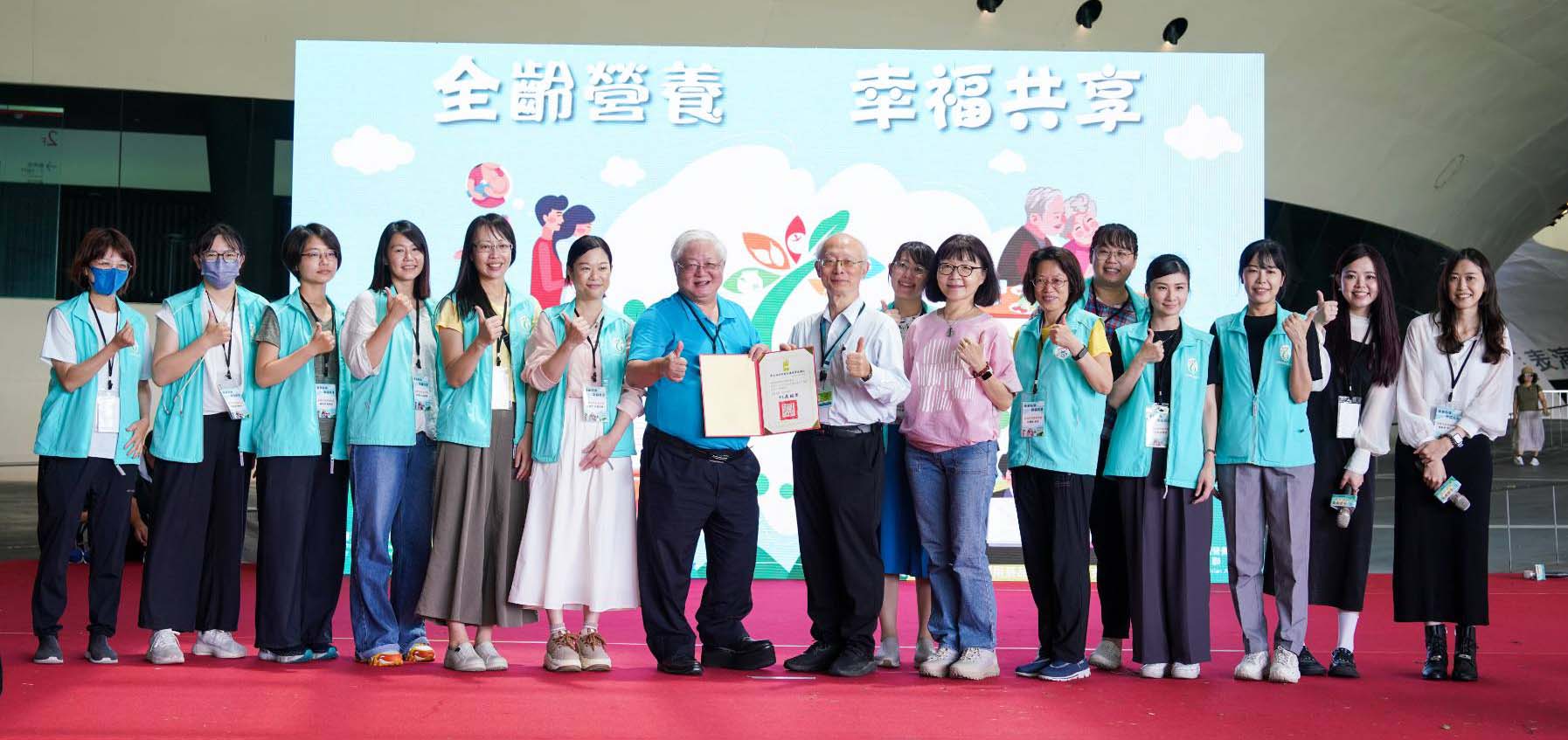 衛生福利部國民健康署各縣市社區營養推廣中心推動成果展6月7日在高雄衛武營國家藝術文化中心舉行,主題定為「全齡營養、幸福共享」,國健署署長吳昭軍(圖一中)、組長劉家秀(圖一左一)、高市衛生局長黃志中(圖一右二)、中華民國營養師公會全國聯合會理事長郭素娥(圖一左二)、常務監事金惠民(圖一右一)等人啟動舞台道具宣布活動起跑,吳昭軍頒贈黃志中感謝狀,肯定衛生局推動跨區觀摩交流與社區營養服務貢獻,高市衛生局分享秉持共好共食理念,設計各區域族群營養策略,打造需島導向營養行動方案。