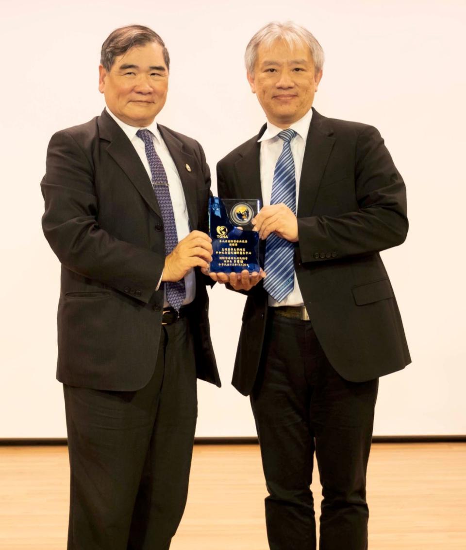 高醫2005年結合各國醫療院所臨床技術交流合作,力推國際醫療援助,協助非洲、大洋洲、中南美洲、東南亞等地開發中國家,成果榮膺國際醫療衛生促進協會第九屆國際醫療典範獎團體獎,高醫副院長林宗憲(圖一右)代表接受表揚。