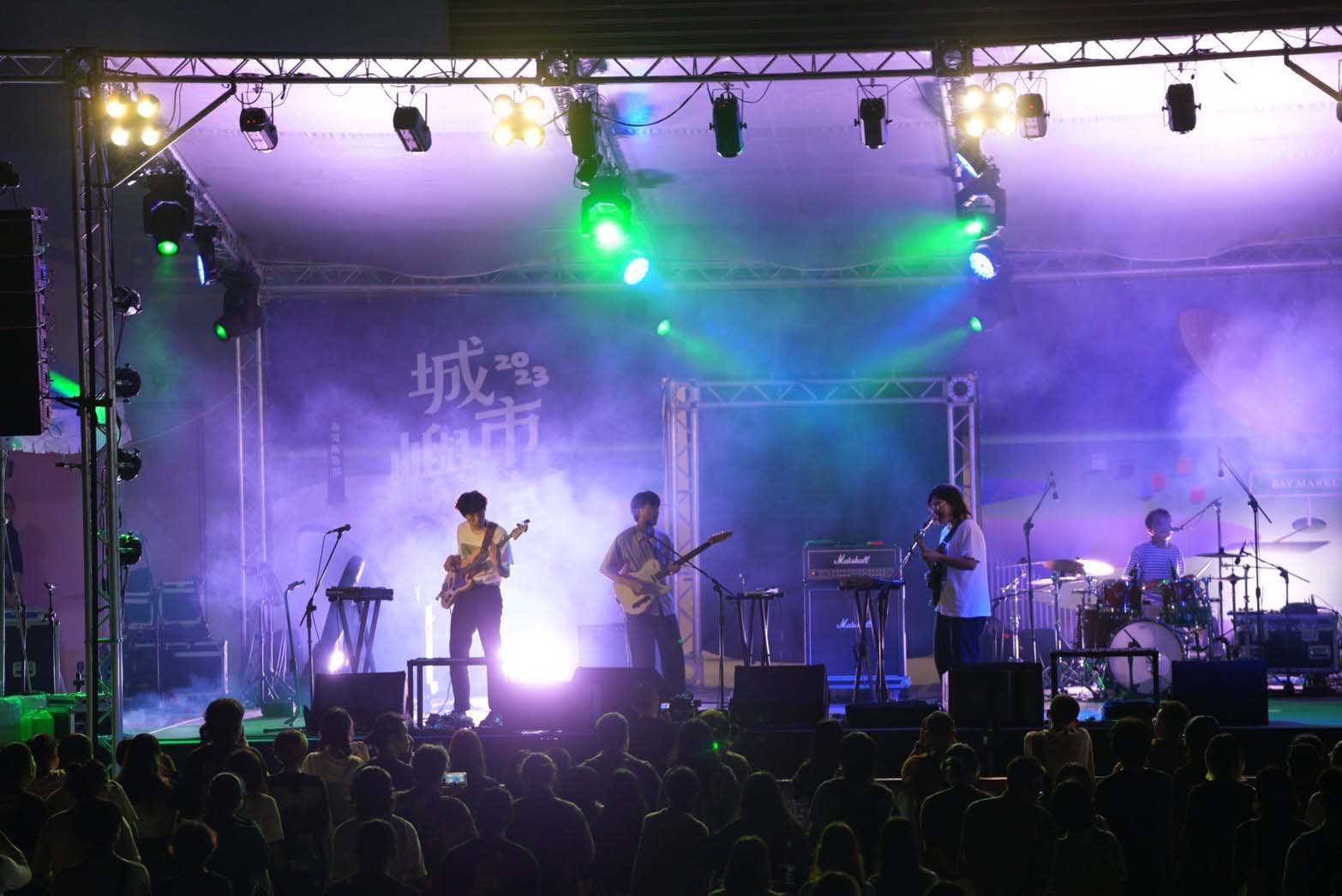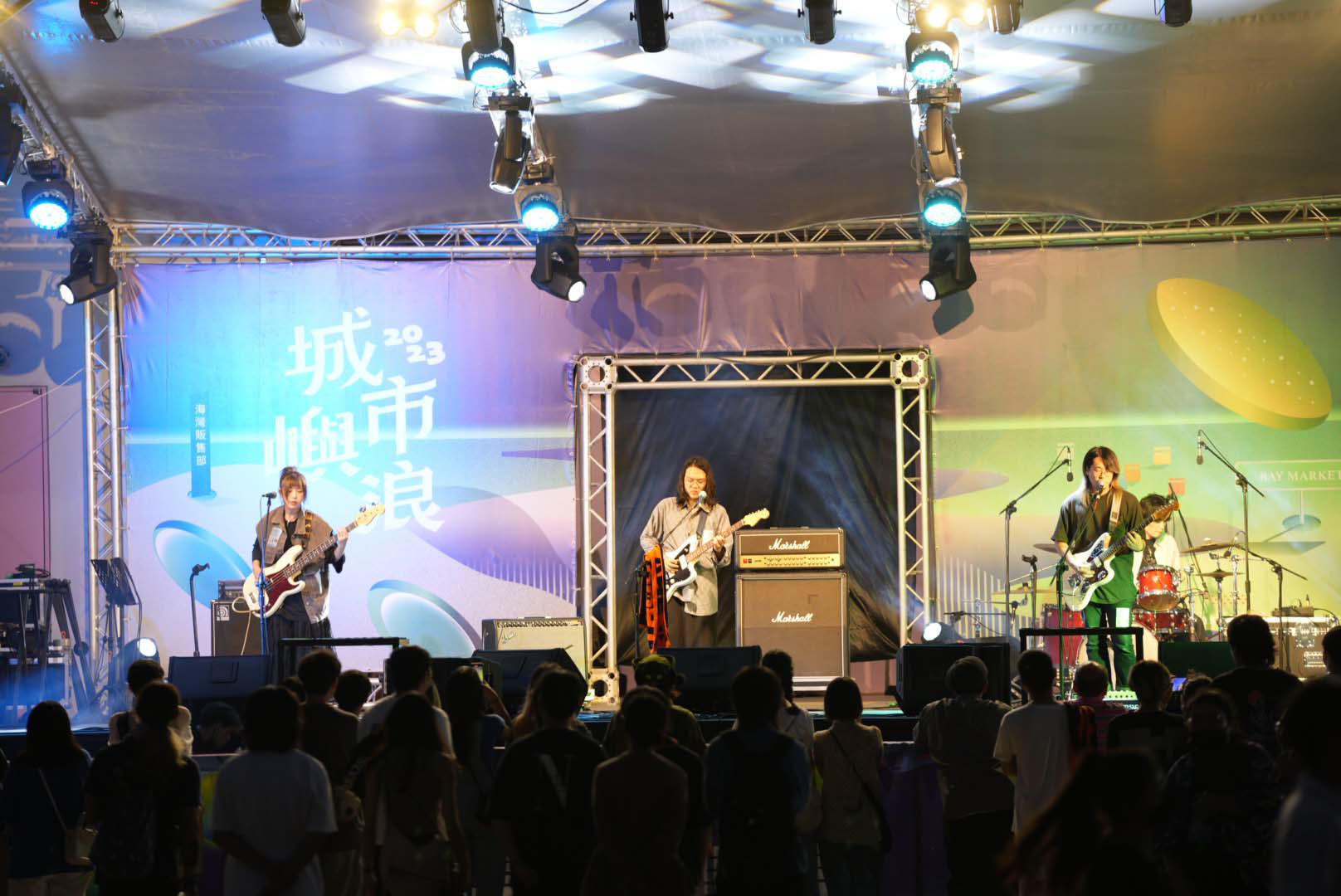 高市青年局城市嶼浪市集11月11日及12日下午2點至晚上9點在高雄流行音樂中心海風廣場舉行,匯集80家人氣攤車,首日邀請青年局「高速青春-音樂製作訓練計畫」育成樂團鯊魚娃娃機(圖一)、含金鵲(圖二)、宇宙資料庫(圖三)、聽聽就好(圖四)、薄荷綠工廠(圖五)、夕陽武士(圖六)等輪流登台,12日怕胖團、芒果醬(Mango Jump)(圖七)、離岸流、XMORAZ等樂團接力獻藝,歡迎民眾善用輕軌前往真愛碼頭站下車,步行直達會場。