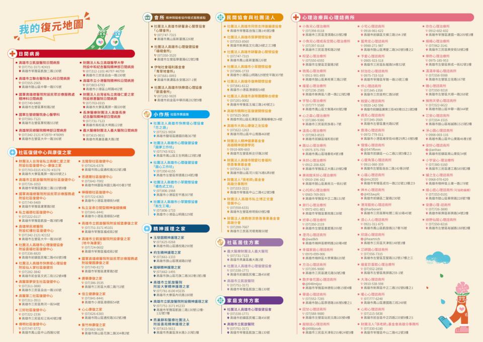 高市衛生局印製精神復元地圖 便利民眾快速掌握可用資源
