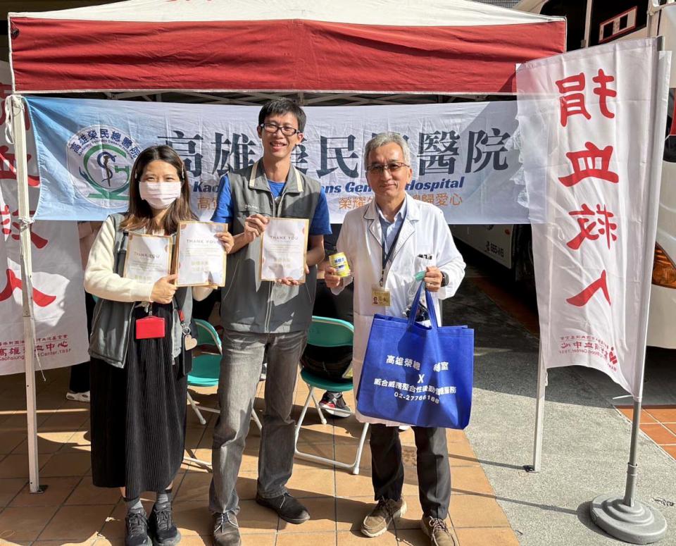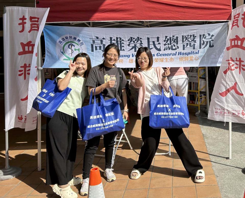 高雄榮總總務室、社工室、營養室、圖書館、員工消費合作社主辦、病檢部、總務室策畫捐血活動,號召醫護人員、志工、病友家屬及洽公民眾挽袖獻愛,營養室及員工消費合作社提供健康飲品,並結合傳統醫學科醫師宣導冬季飲食、癌症中心推廣活動等,捐血者可獲贈圖書館二手書、總務室資源循環再利用製作紀念品等,院長陳金順說,感謝同仁及各界支持,增添暖意,落實環境永續鏈結社會關懷行動。圖/高榮提供、文/高培德