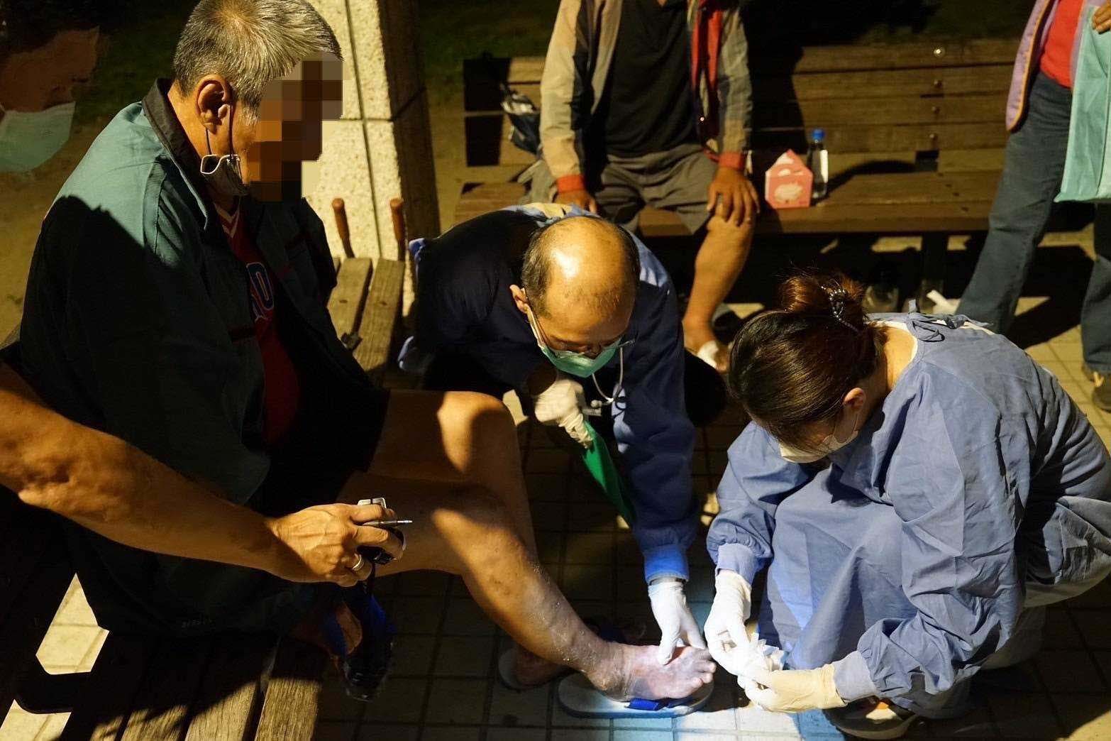 財團法人高市慈聯社會福利基金會受託社會局辦理高市街友中心,11月8日在三民公園辦理外展醫療服務試辦計畫,聯合醫院急診醫護、三民街友中心社工等8名人員,協助4名街友外傷處置、6人痼疾評估、3人生命徵象監測等初級醫療照顧服務,社會局長蔡宛芬說,外界對街友存有負面印象,鼓勵街友積極求助、翻轉人生,感謝參與街友外展醫療服務計畫單位投入,期盼公私協力協助街友早日回歸社會。圖/社會局提供、文/高培德