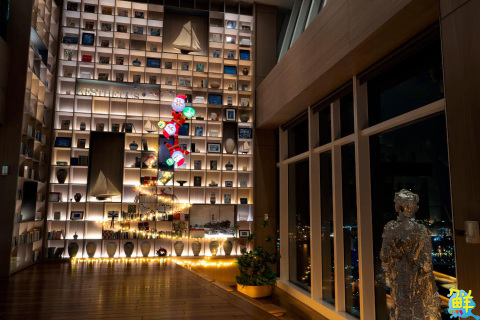 ▲旅客一抵達承億酒店1樓書牆大廳即可看見首棵「聖誕書」綻放迷人光芒,感受藝術與空間的完美融合