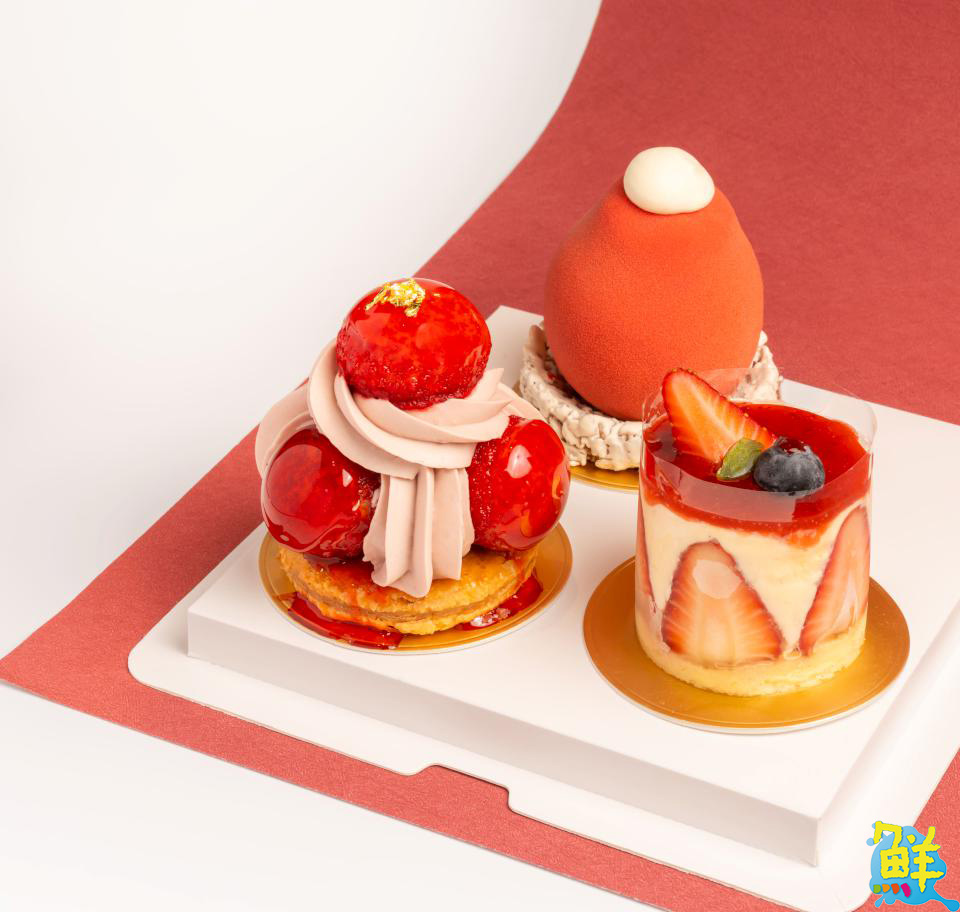 ▲「飛裊茶軒」推出草莓公主、聖誕帽帽與莓日好運三款聖誕主題甜點