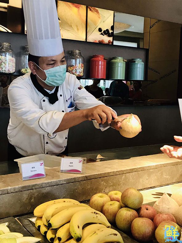 喜迎暑假來臨,活動期間每天午晚餐安排香蕉飛餅快閃秀、香水椰子現剖現飲等互動料理秀,主廚現身餐點區與顧客熱情互動,陪伴共度用餐時光。
