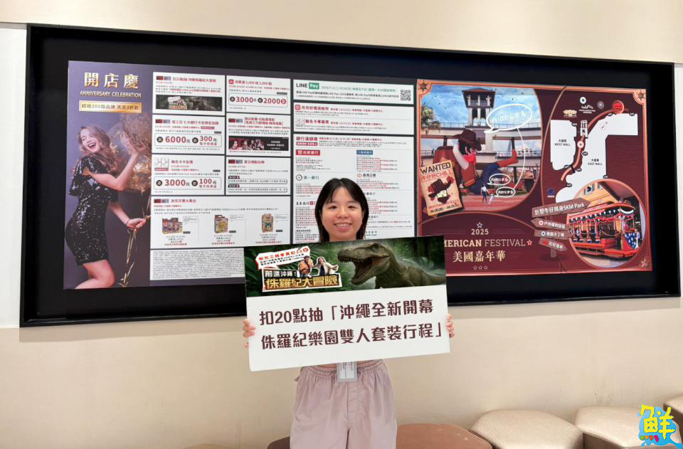 本次開店慶「夢幻旅遊抽獎」活動,8/1(五)-8/31(日)只要扣20點,即可參加「沖繩侏儸紀大冒險」抽獎活動,有機會免費獲得沖繩JUNGLIA侏羅紀主題樂園雙人套裝行程!為了歡慶開店,8/10(日)特別包場國賓電影院,舉辦獨家「扣點看電影」活動,8/1(五)開始,新光三越會員可以到APP點數專區扣150點兌換電影票,於8/10(日)指定場次至SKM Park Outlets高雄草衙 的國賓電影院進場觀賞8/8(五)新上映的《鬼滅之刃劇場版 無限城篇》,粉絲們千萬別錯過!=