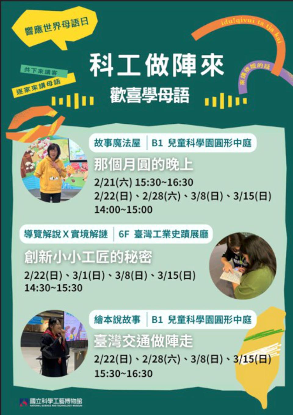科工館響應國際母語日 「科工做陣來‧歡喜學母語」3主題活動邀參