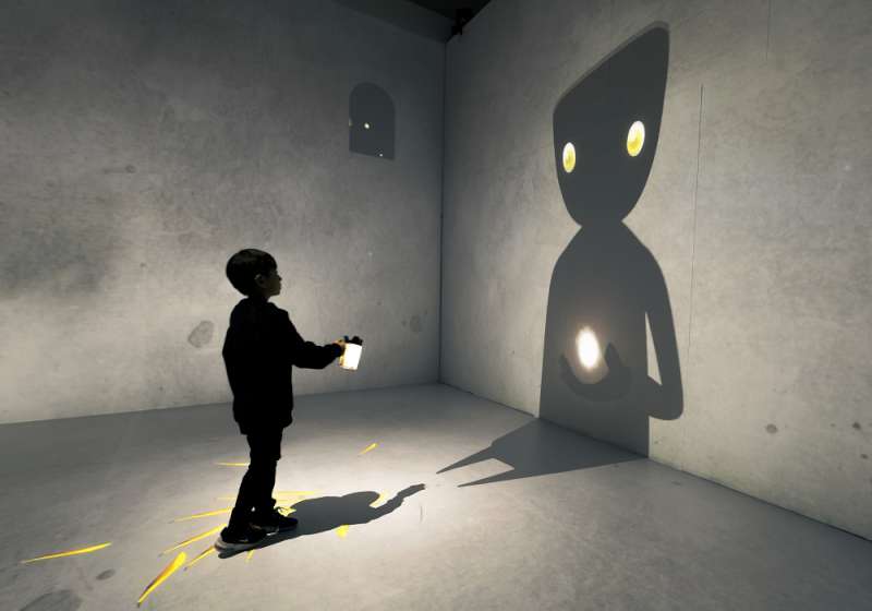 高市副市長史哲開箱揭示XR無限幻境展場(圖一),並試玩韓國沉浸式劇場《光影遊戲:追星星的人》(圖二),他表示,作品饒富童趣,透過光影產生錯覺,讓人彷彿置身異度空間,推薦大家體驗。