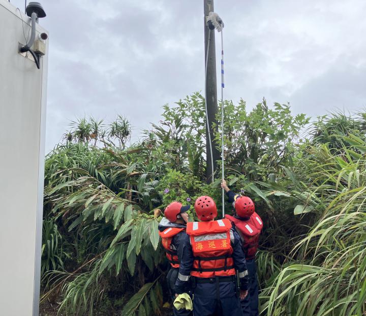 因應強颱凱米侵襲,海巡署第一岸巡隊岳明巡邏站人員巡查無尾港海灘,並協助國海院檢視岳明波流監測站及海岸即時影像,確認運作正常。