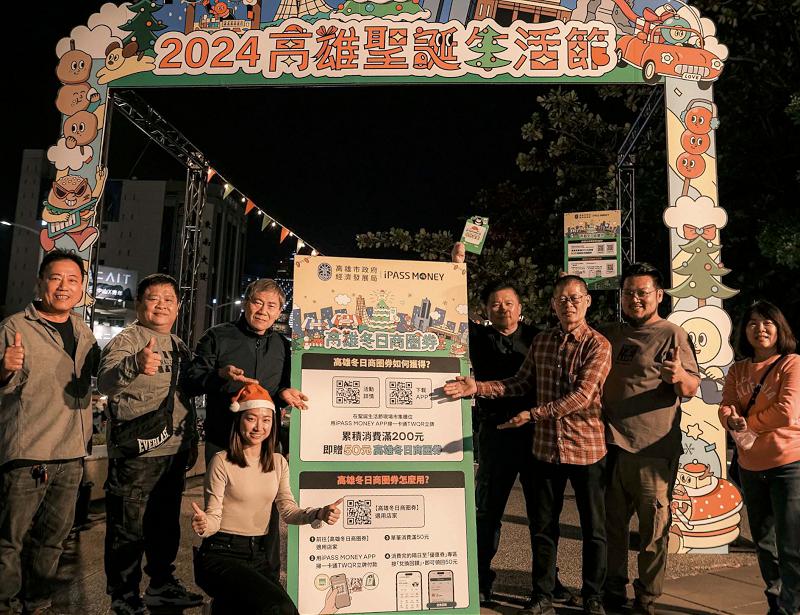 「2024第二屆高雄聖誕生活節」X「日本B-1美食市集大賽」 12月20日至23日、27日至29日在中央公園及商圈兩地同步登場,12月21日下午1點20分舉行開幕式,匯集商圈夜市代表、青年局輔導優良業者參展超過180個攤位,首日鶴The Crane、VH(Vast&Hazy)、國蛋 GorDoN、美秀集團等輪番獻藝,吸引逾8萬人到場,人流量相較平日成長3倍,期間使用 iPASS MONEY APP單筆消費滿200元贈高雄冬日商圈券50元,適用30處商圈夜市。