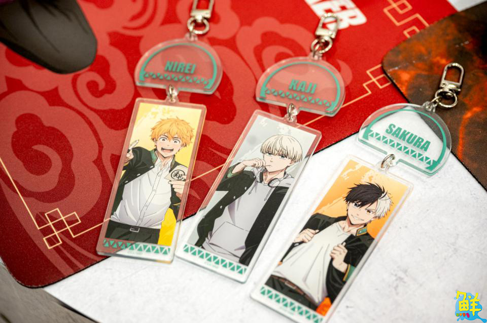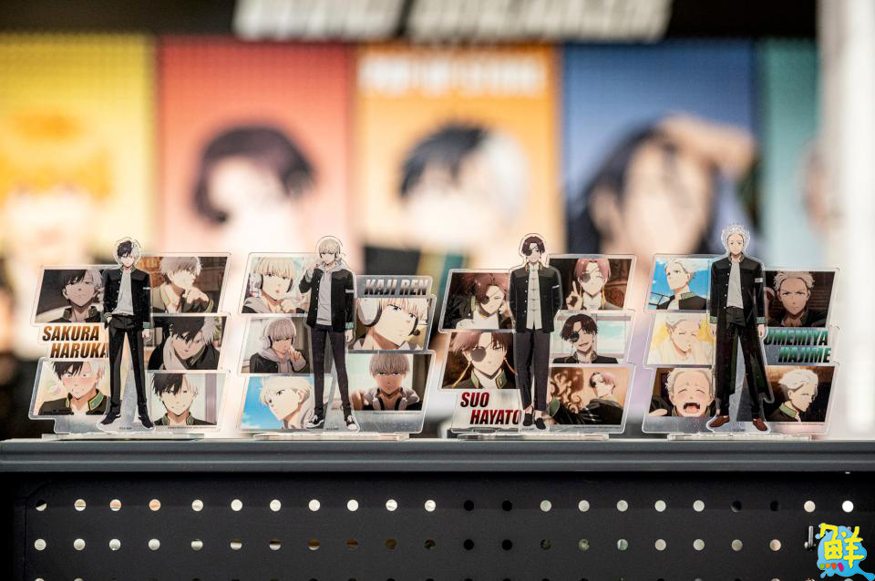 現場多種週邊等粉絲選購!店內有柊、櫻、梶、桐生和蘇枋等八款「盲抽學生證」,還有共40種圖案、160張的兩款「貼紙製造機」!兼具實用與美觀的校徽「木盤」,以及Q版角色「造型夾」和兩款「無框畫」!最後是梅宮、櫻等四款角色「Q板抱枕」,圓圓大眼配上跩跩的表情根本超欠買!