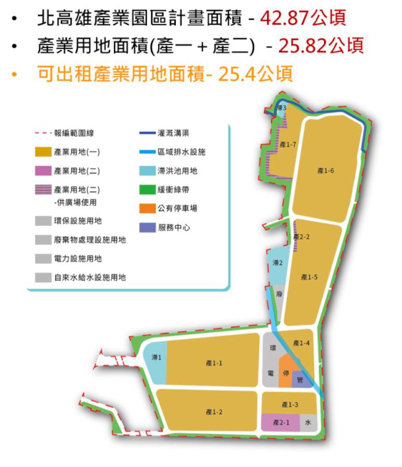 經濟部工業局核定岡山設置占地42.87公頃北高雄產業園區4月22日動土,其中25.82公頃產業用地只租不售,南端第一區6.53公頃土地5月5日公告開放金屬製品、電子零組件、機械設備製造等低碳、低污染、就業機會多等產業進駐,申租兩年內符合台商回流方案企業享優先承租權,預計5月19日下午2點在岡山文化中心舉行招商說明會,說明申租方式,歡迎企業抽空參與,詳情可上北高雄產業園區官網查詢或電洽(07)9638893李小姐。圖/經發局提供、文/高培德