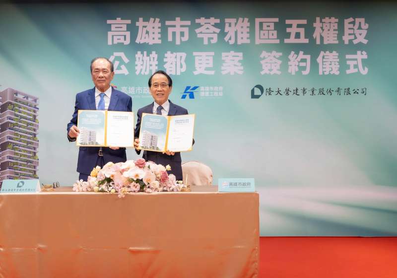 高市副市長林欽榮(圖一右)12月23日與隆大營建事業董事長陳武聰(圖一左)簽約,宣示成為高市苓雅區清潔隊公辦都更案最優申請人,規劃斥資55億6700萬元,預估開發量體約17000坪,營造高雄輕軌五權國小躋身大眾運輸導向車站。