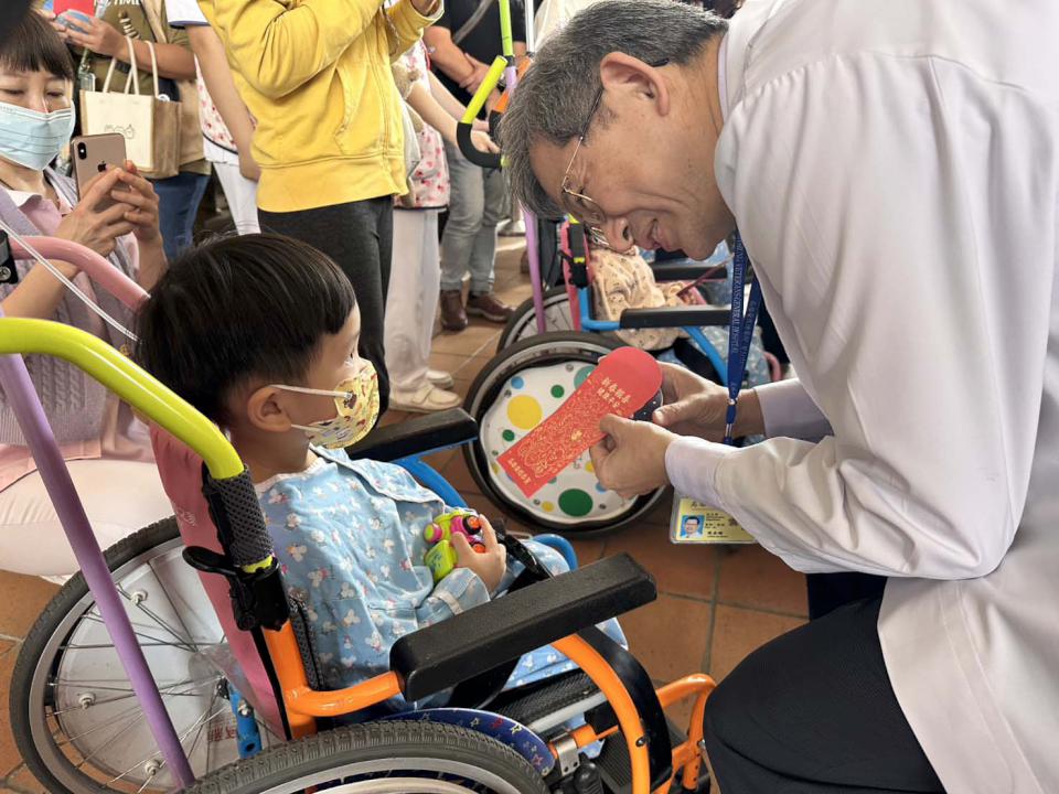 高雄榮總2月6日辦理「躍馬揚蹄,品茗揮毫」贈春聯活動,邀請書法名家現場揮毫贈限量春聯,高榮院長陳金順、輔導會事業處處長董紹明等人參與開幕式,共同寫下「金馬躍彩迎年順」等字,祈願新年健康平安、福氣臨門,陳金順也現場發送祝福紅包,橋頭馬場調派2匹駿馬開放合影同樂,輔導會旗下農場設攤展售農特產品,並開放免費品茗高山茶。圖/高榮提供、文/高培德