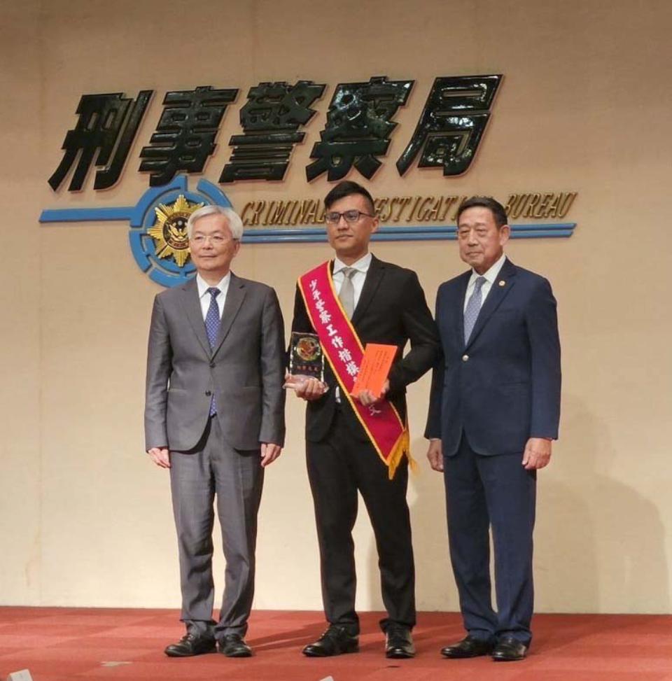 高市警察局少年警察隊偵查佐郭博文(圖一中)專注少年保護工作,適時導正及協助偏差兒少回歸正常生活,獲頒內政部警政署第22屆績優刑警少年警察工作楷模,12月10日接受警政署長張榮興表揚。