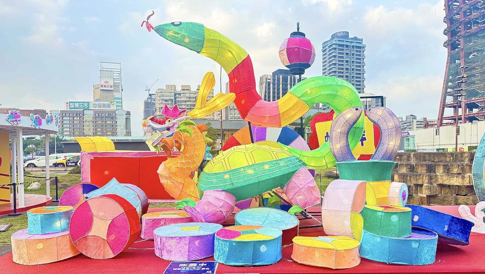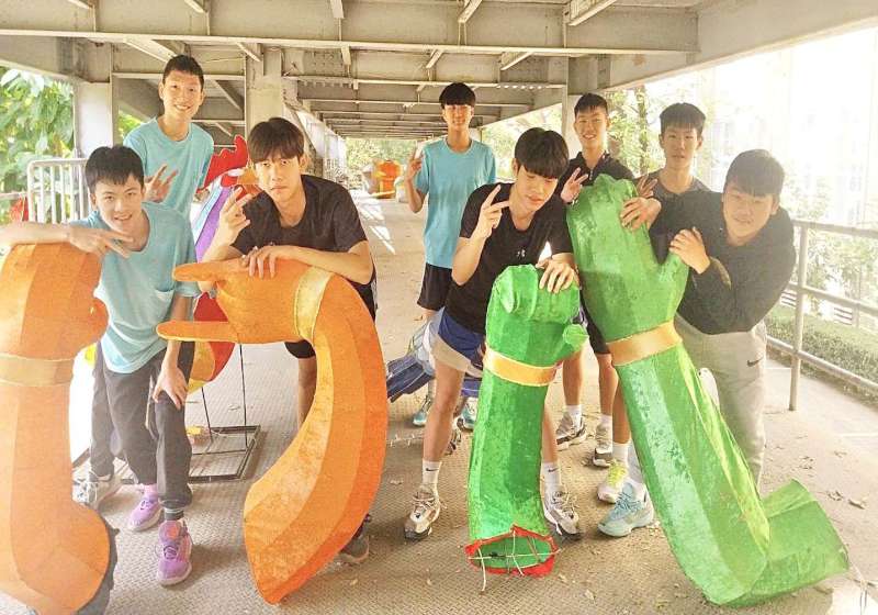 參與「三星迎財蛇」及「蛇年吉祥」創作黃亞斯說,平時忙碌籃球隊團練,假日參與花燈製作,彎折骨架設計造型考驗體能,樂見作品逐步完成,辛苦一切值得。