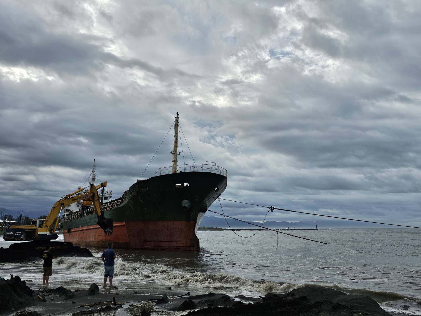 強颱凱米致喀麥隆籍貨櫃輪吉娜擱淺 交通部航港局跨單位協調移除船體