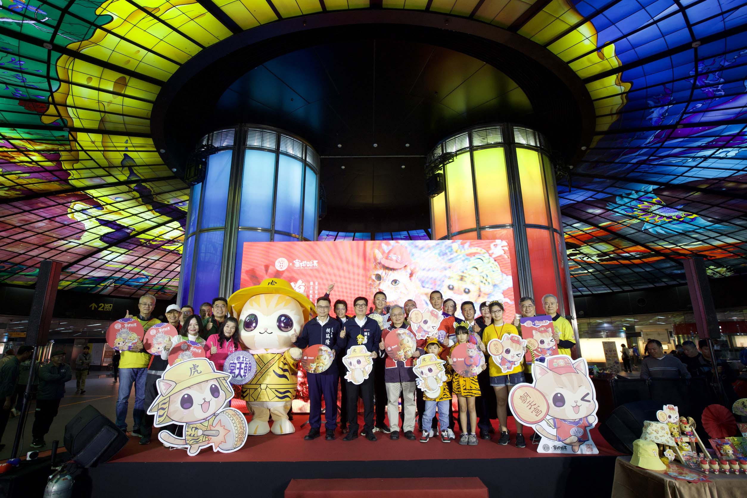 「萌虎慶平安•高雄過好年~蜜柑站長ft.北港朝天宮聯名暨彩繪列車首航宣傳活動1月24日在高捷美麗島光之穹頂大廳舉行,高雄市長陳其邁、北港朝天宮董事長蔡咏鍀、虎爺會會長林鴻儒等人參與,蘇仁義領軍北威聲奏樂團演奏傳統曲牌「下山虎」,祈願活動順遂,乘客出入平安,虎爺帶來北港鎮知名餅店風來虎嘯禮盒分送各界來賓。