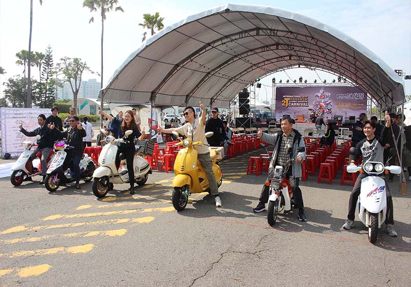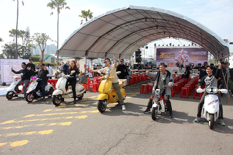 第二屆國際2T經典老車嘉年華1月11日及12日在時代大道(中華路至成功路)封路舉行,規劃比慢及選美等趣味競賽,觀光局長高閔琳、副局長孫春良、主辦單位代表呂志賢等人下場挑戰比慢,從起點出發加油門前進,移動距離最遠且腳未著地者獲勝,高閔琳一馬當先率先抵達終點,現場同步展出超過100輛各式復古機車,場邊還有攤位市集展售美食小吃,吸引不少民眾參與。圖與文/高培德