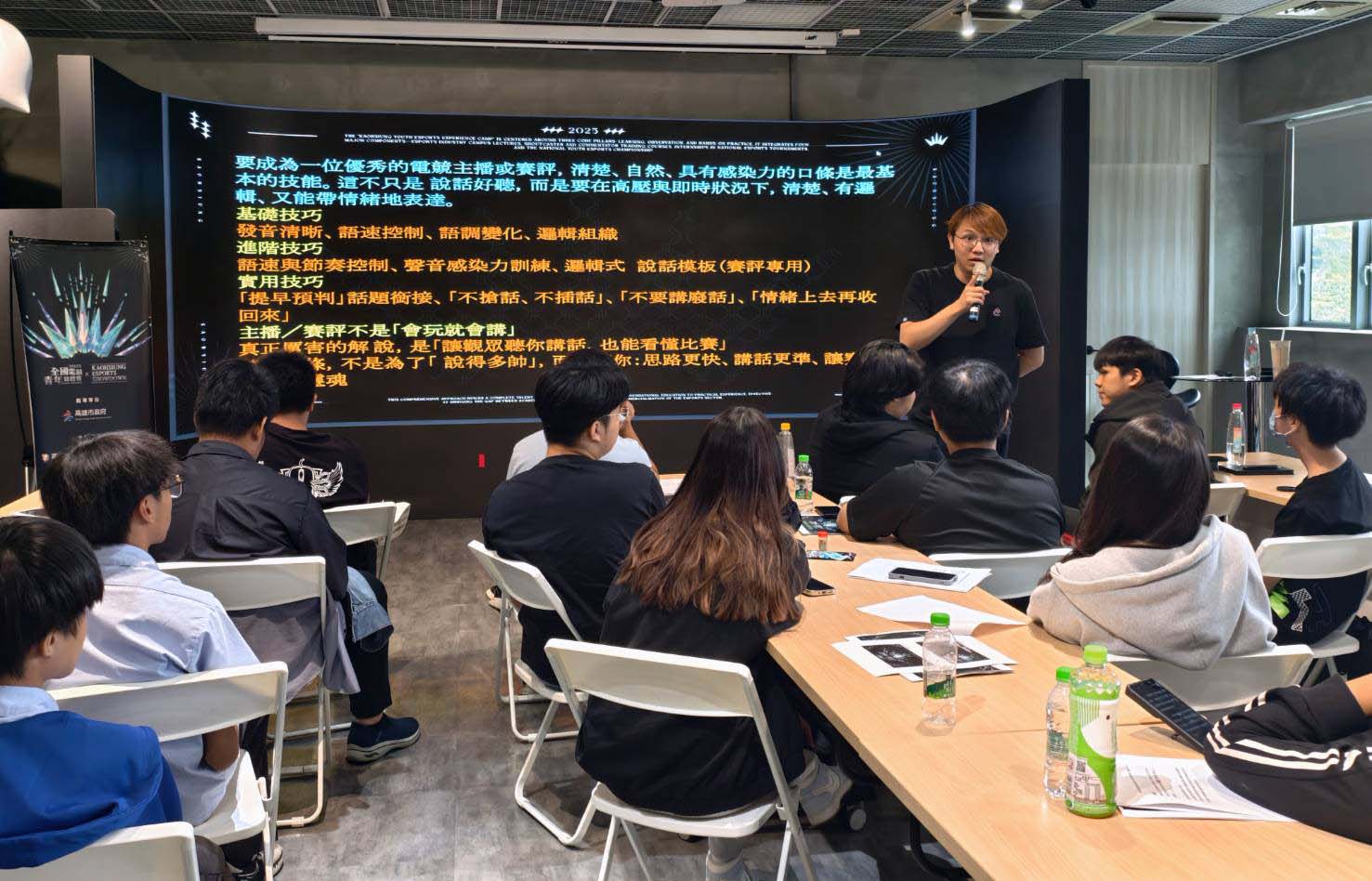高市青年局結合在地大專院校電競專班合,辦理校園講座、賽事實習等活動,114年課程從幕後製播延伸至幕前培育,10月20日、21日辦理主播賽評培訓課程,遴選15名大專院校生參與「電競產業與主播賽評角色解析」、「賽事解說架構與邏輯」、「基礎口條與表達技巧」、「實況轉播合作與個人風格打造」及「雙人搭配練習與錄播實戰」等課程,並邀請知名賽評主播尼亞及JR分享實務經驗及傳授播報技巧,青年局長林楷軒說,市府重視培訓電競人才,青年局結合產官學完善電競教育體系,114年新增幕前培訓課程,培育主播及賽評等人才,協助學員拓展多元職涯。