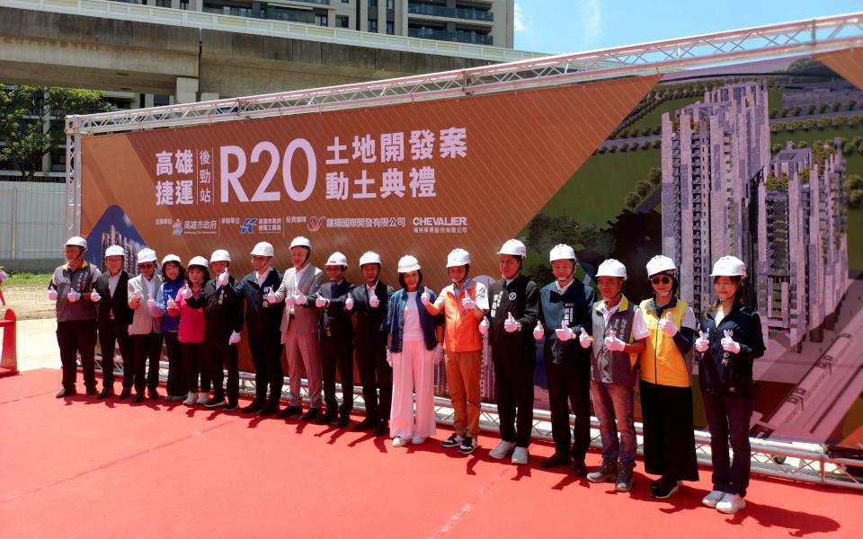 高市副市長林欽榮、捷運局長吳嘉昌、鑲揚國際開發董事長林聰麟、福裕事業副董董上裕等人8月21日上香參拜並手持金鏟鏟土,祈願斥資42億9000萬元、占地1658坪高雄捷運後勁站R20土地開發案工程如期如質完成,占地約19000坪開發案,預計119年7月完工啟用,打造楠梓第二行政中心,帶動先進製程科技聚落成型,林欽榮說,市府積極招商引資及推動土開案,延續高捷橘線O4動工,R20土開案增添大眾運輸天際線新地標,滿足產業聚落帶進人口住居需求。