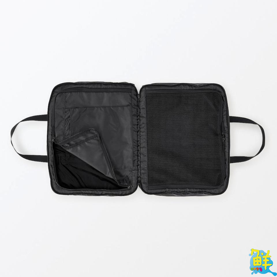 旅程起點從行李打包開始,「四輪硬殼止滑拉桿箱系列」提供四種容量,箱體材質選用堅固耐用的聚碳酸酯,內層則使用以回收桶裝水瓶製成的再生聚碳酸酯,降低二氧化碳排放。拉桿箱的雙滑輪配合吸音性較佳的材質,減少移動時的噪音。搭配按壓式止滑鎖,提升安全性與安心感。此外,MUJI無印良品也推薦可折疊撥水加工包系列,是旅途中不可或缺的靈活好幫手。