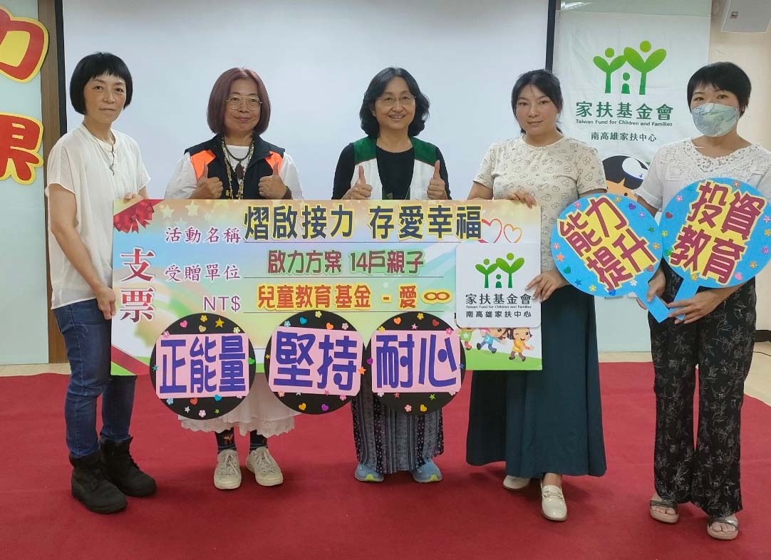 南高雄家扶中心7月20日舉行兒童啟力方案結業式,14戶扶助家庭30名親子完成為期兩年學前教育及理財等課程,扶幼委員會副主委賴曼綺、主任郭淑美等人致贈學員「堅持」、「耐心」、「正能量」、「能力提升」、「投資教育」等道具存摺表達祝福,期勉持續朝育兒路前行。