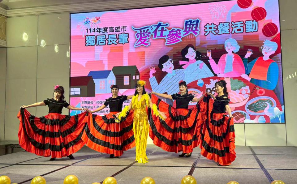高市社會局長青綜合服務中心攜手高雄林皇宮席宴10月23日邀獨居長者共進午餐,並安排志工登台獻藝,市府副秘書長王宏榮、社會局副局長葉欣雅等人到場,王宏榮提前預祝大家重陽節快樂,也感謝業者支持獨老服務,如發現長者待援可電洽(07)7710055及0800-095-785。圖/社會局提供、文/高培德