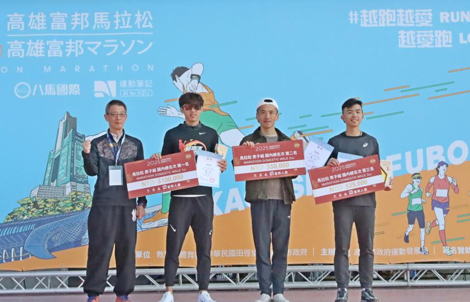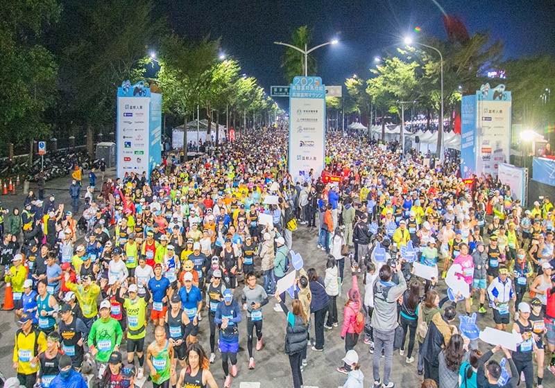 高市運動發展局主辦、富邦人壽冠名贊助南2025高雄富邦馬拉松1月12日續進行全程、半程男女、視障、運動輪椅等組馬拉松等賽事,副市長李懷仁、富邦人壽執行副總周資為、運發局長侯尊堯、高市府顧問張泰源、旅日長跑選手簡子傑等人齊聚世運大道鳴笛宣布起跑,李懷仁說,熱情港都歡迎馬拉松同好,高富馬邁入第15年持續進步,落實運動平權,總獎金2964000元,全馬組冠軍可獲獎金30萬元、國內組冠軍獎金10萬元,輪椅及視障組加碼獎金234000元,中華民國籍選手刷新全國紀錄可獨得60萬元,賽事路線行經7處行政區,歡迎跑者順嘗當地美食,欣賞沿途美景。