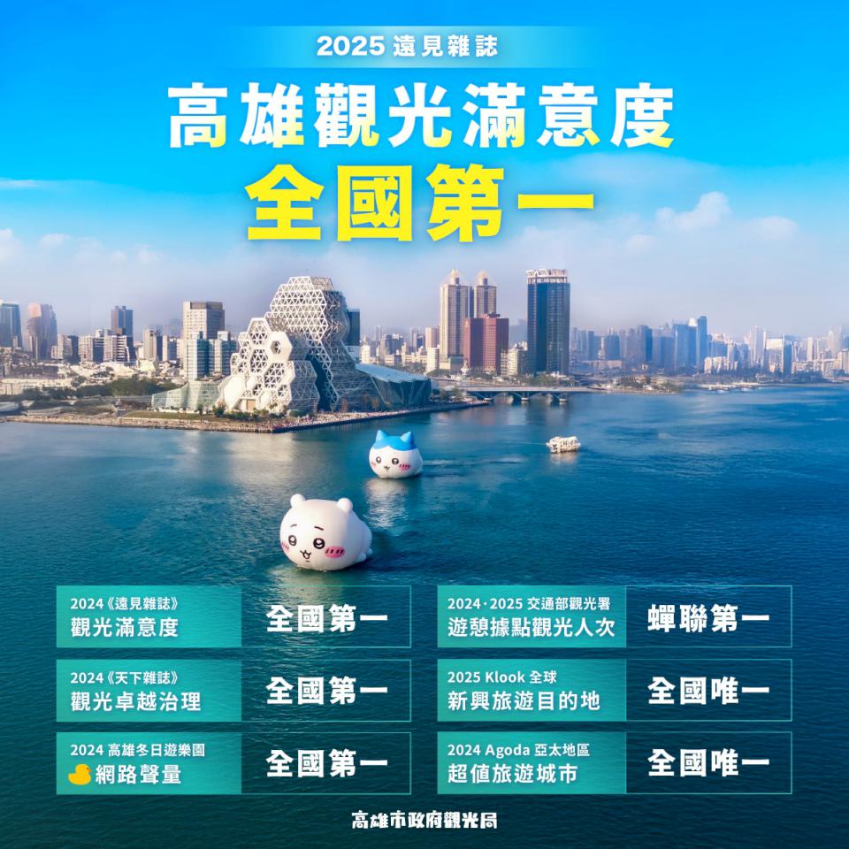 高雄觀光全國第一蟬聯冠軍寶座,再獲國際大獎雙料金牌!2025年《遠見雜誌》縣市長施政滿意度調查結果出爐,高雄市長陳其邁個人滿意度六都最高、蟬聯五星市長殊榮,其中,在經濟、交通、衛生、教育、環保都是六都第一,高雄觀光滿意度則再度蟬聯全國第一,榮登冠軍寶座。