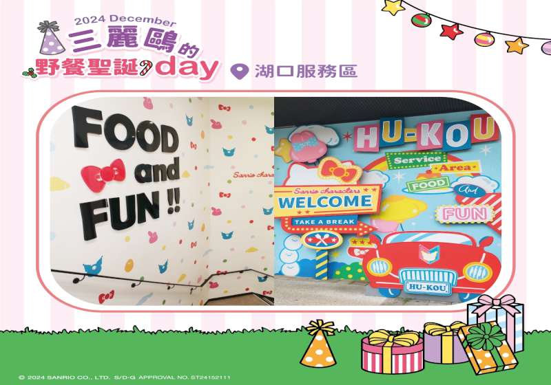 全台限定日本卡通精品製造商主題國道3號湖口服務區12月21日辦理「三麗鷗的野餐聖誕day」,超人氣角色酷洛米現身,主題商店當日單筆消費滿500元,可兌換限量拍照券一張,同步規劃「KUROMI'S PRETTY JOURNEY」影片馬拉松、販售人氣聯名雞蛋糕,另12月21日至29日穿戴三麗鷗圖案服飾或紅色蝴蝶結並購買指定商品不限金額,同時完成指定步驟可兌換HELLO KITTY紅色蝴蝶結許願卡,寫下心願還有機會抽中特製蛋黃哥好禮等。12月21日至2025年2月2日購買指定商品及服務區消費累計滿500元即贈三麗鷗不織布提袋一只,12月14日至25日國道3號中壢、湖口、古坑服務區、大武之心南迴驛、屏東小墾丁渡假村「尋找聖誕老公公」,尋覓聖誕老公公代班人小墾丁渡假村吉祥物「度咕」並完成指定任務即可獲贈品,上傳與湖口服務區北站聖誕節限定打卡點至個人社群可領取贈品一份,中壢、湖口、古坑服務區、大武之心南迴驛單筆消費滿200元有機會抽中老牌兒童零食冷水壺,更多活動資訊可上南仁湖官方社群查詢。圖/南仁湖育樂提供、文/高培德