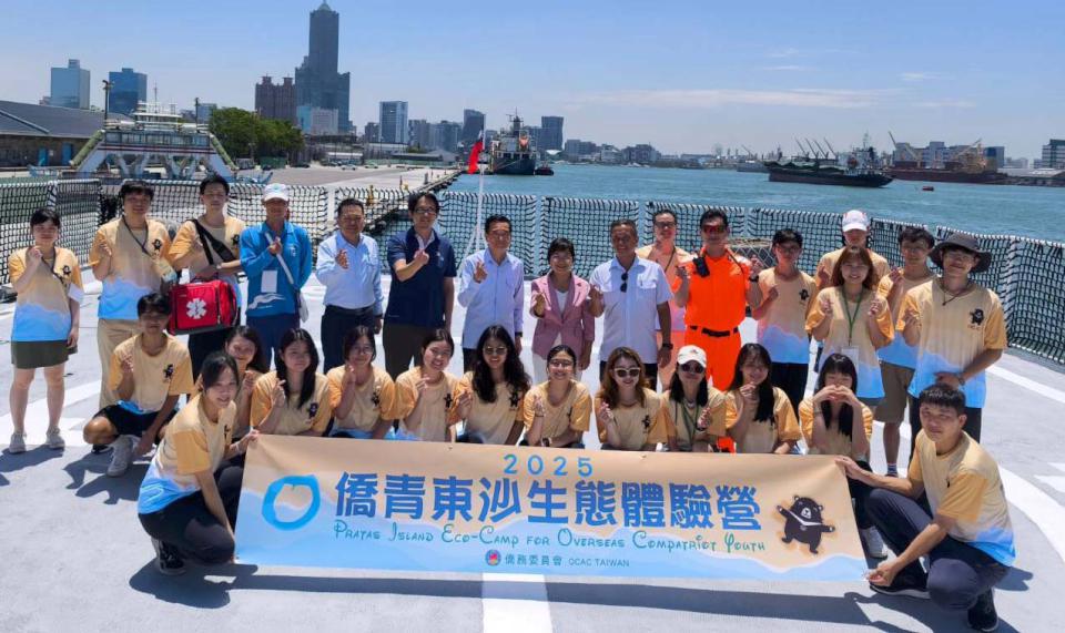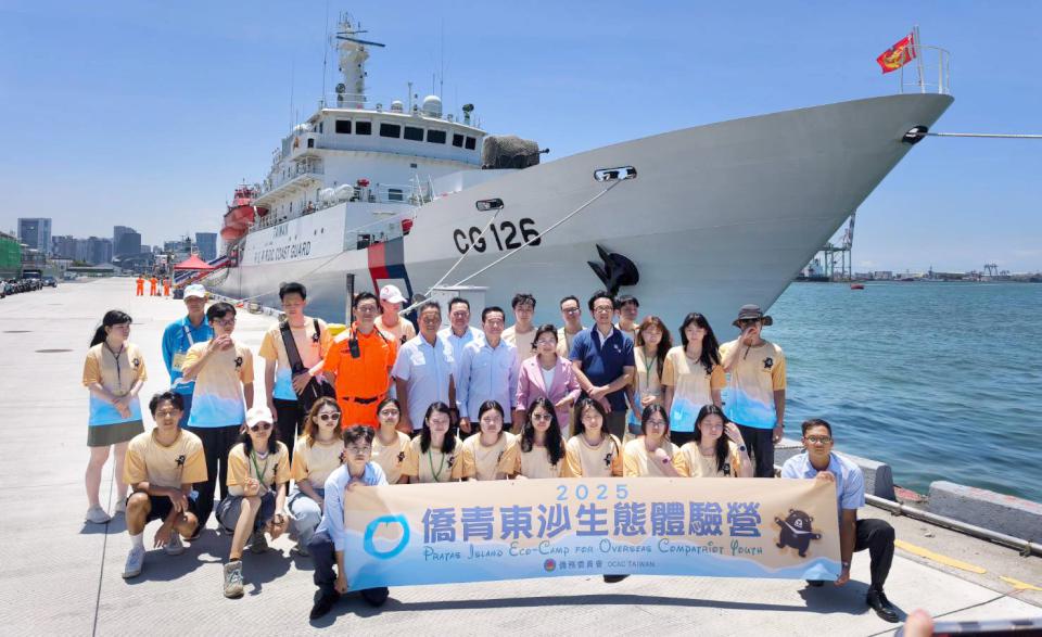 僑務委員會、海洋委員會、海巡署、內政部國家公園署海洋國家公園管理處合辦2025僑青東沙生態體驗營,馬來西亞、緬甸、越南及美國等4國學員8月8日搭乘海巡署臺南艦前進東沙島,展開為期5天生態體驗旅程,僑委會委員長徐佳青(圖一左)說,海委會、海巡署、海管處等單位投入海域維安及生態保育等工作,僑委會109年規劃結合海委會,開放僑生登上東沙島,但受限新冠肺炎疫情被迫取消,恭喜學員順利出航,也期許大家遵守安全規定,把握學習機會。