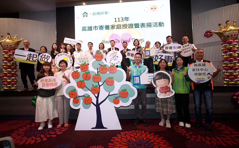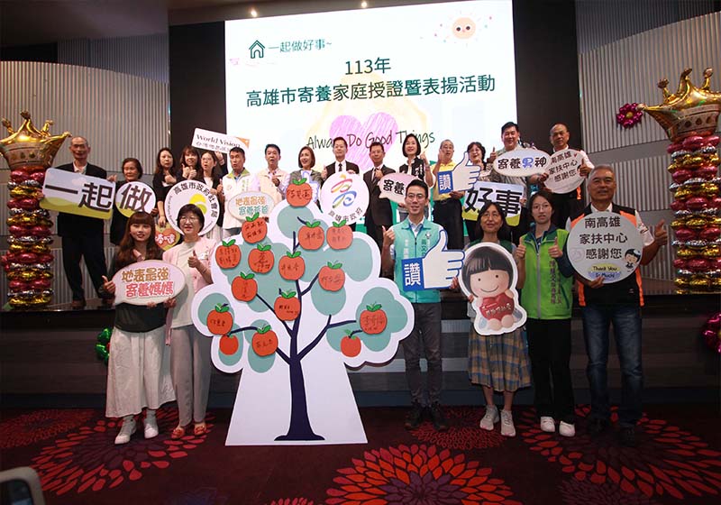 高市社會局10月19日舉行寄養家庭授證暨表揚活動,市府祕書長郭添貴、社會局長蔡宛芬等人頒獎嘉勉服務滿3至25年35戶資深寄養家庭,感謝辛勞付出及無私奉獻,同時授證178戶新加入寄養家庭,陳勇全與趙寶玉賢伉儷擔任寄養人25年,曾扶助22名兒少,夫妻化身最佳盟友,攜手共度難關,也帶動女兒用心陪伴寄養對象,扶助方案結束前,每名寄養兒少獻上禮物表達感謝。