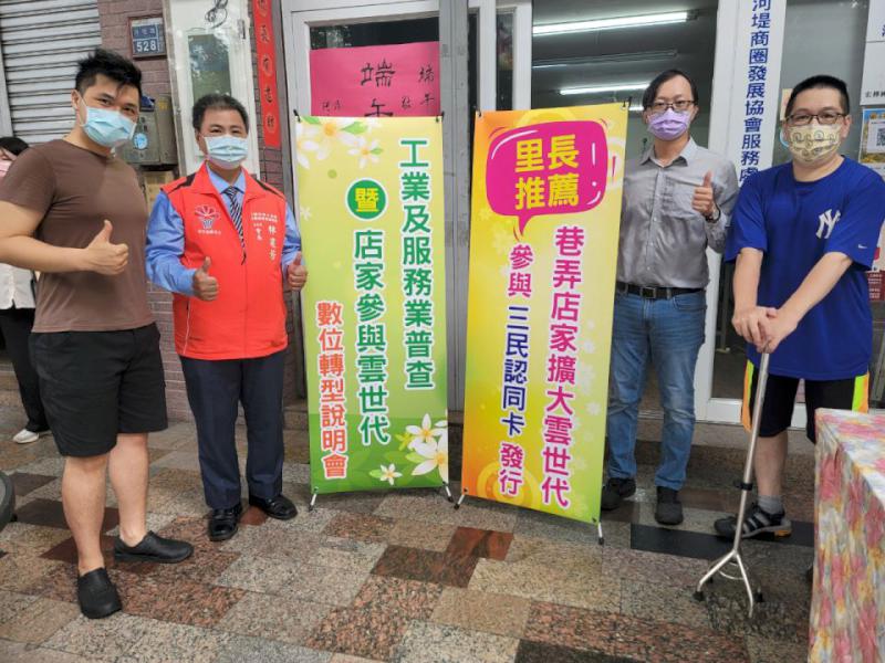三民區公所並於五月二十五日(三)起,協同高雄市三民區工業及服務業普查所,連續3天辦理6場向里長宣導使用線上雲端工具完成工商普查;除了比傳統普查方便,更可在疫情期間減少接觸,最重要的更能結合政府推動雲世代的精神;另從五月底開始至六月底止,河堤商圈更開放三民區有需要輔導的店家,也可以透過里長宣導來河堤商圈協作中心協助填報。