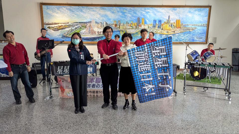 高市私立星星兒社會福利基金會星星王子打擊樂團2月5日至11日受邀日本全國手牽手育成會,前進日本大阪參與2025大阪關西萬博國際文化藝術節登台獻藝,社會局長蔡宛芬1月14日授旗星星兒基金會董事長林美淑獻上祝福,也感謝基金會長期攜手推動身心障礙福利服務,期盼藉由此次訪日演出,展現國際文化交流及推動社福措施成果,強化各界同理包容自閉症病友,也相信身障朋友藉由持續努力,可望發揮無限潛能,站上舞台發光發熱。圖/社會局提供、文/高培德